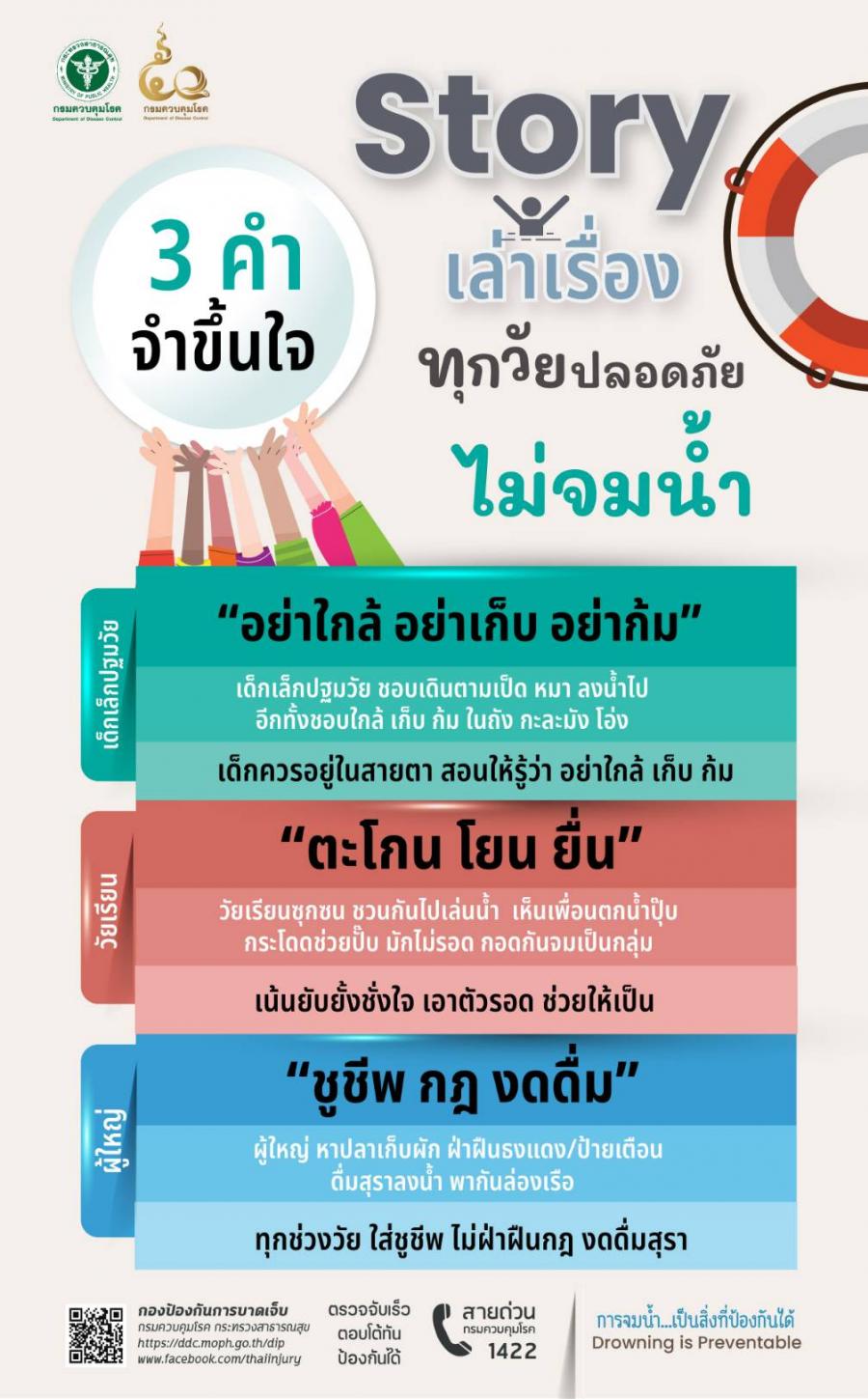 ประชาสัมพันธ์การป้องกันการจมน้ำทุกวัยปลอดภัยไม่จมน้ำ