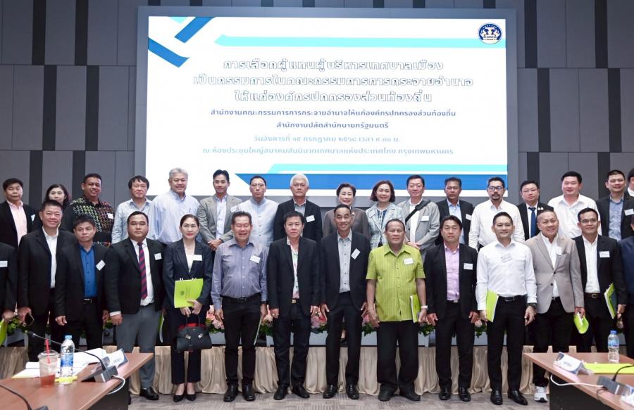 วันอังคารที่ 15 กรกฎาคม 2568 เวลา 10.30 น. ชั้น 1 อาคารสมาคมสันนิบาตเทศบาลแห่งประเทศไทย ถนนบรมราชชนนี แขวงฉิมพลี เขตตลิ่งชัน กรุงเทพมหานคร นางยุพา ทวีวัฒนะกิจบวร ปลัดสำนักนายกรัฐมนตรี เป็นประธานการประชุมเพื่อดำเนินการเลือกผู้แทนผู้บริหารเทศบาลเมือง และผู้แทนผู้บริหารเทศบาลตำบลเป็นกรรมการในคณะกรรมการการกระจายอำนาจให้แก่องค์กรปกครองส่วนท้องถิ่น (ก.ก.ถ.) โดยมีนายอนุ แย้มแสง ผอ.สกถ. รักษาการในตำแหน่งที่ปรึกษาด้านการกระจายอำนาจ เป็นเลขานุการ และนางสาวอภิรดี ประเสริฐฤทธี ผอ.สนก. สกถ. รักษาการในตำแหน่งผู้เชี่ยวชาญด้านกฎหมายและระเบียบกลาง เป็นผู้ช่วยเลขานุการ โดยที่ประชุมได้มีมติเลือก นายบรรจง โฆษิตจิรนันท์ นายกเทศมนตรีเมืองร้อยเอ็ด จังหวัดร้อยเอ็ด เป็นกรรมการผู้แทนผู้บริหารเทศเมือง และนายธนศักดิ์ มาคะสิระ นายกเทศมนตรีตำบลวัดเพลง จังหวัดราชบุรี เป็นกรรมการผู้แทนเทศบาลตำบลในคณะกรรมการการกระจายอำนาจให้แก่องค์กรปกครองส่วนท้องถิ่น ทั้งนี้ให้มีผลตั้งแต่วันเลือก
