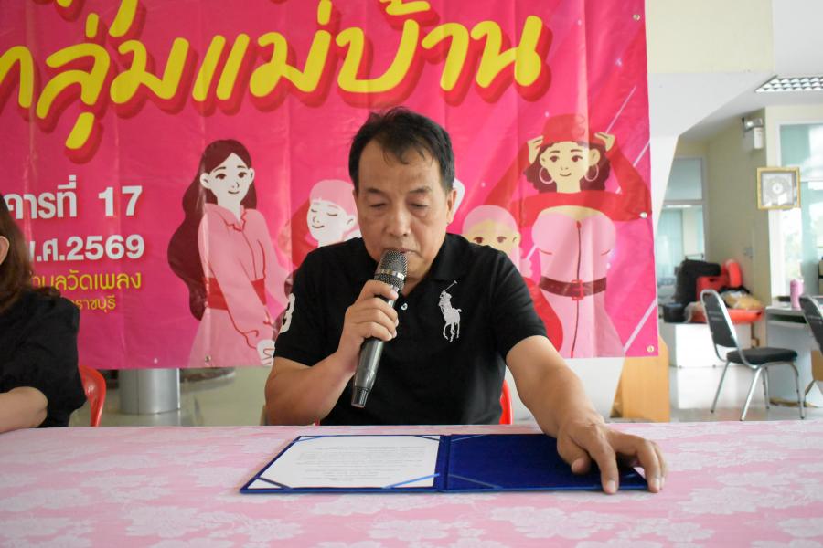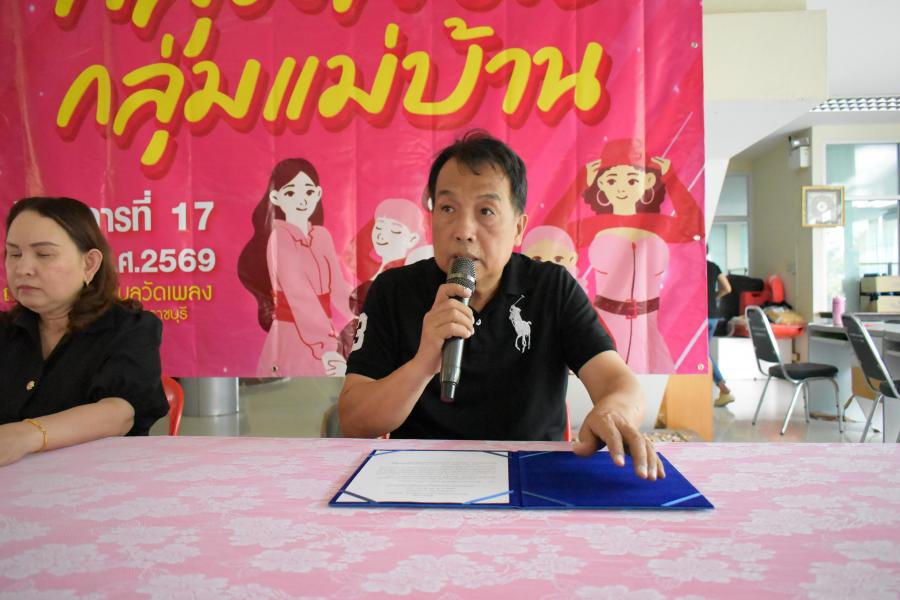นายสุวัฒน์ เล้าศศิวัฒนพงศ์ รองนายกเทศมนตรีตำบลวัดเพลง เป็นประธานในพิธีเปิดโครงการส่งเสริมพัฒนาศักยภาพกลุ่มสตรีกลุ่มแม่บ้าน ประจำปีงบประมาณ พ.ศ.2569