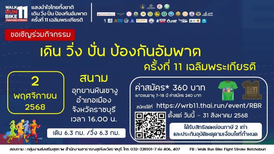 ขอเชิญร่วมกิจกรรม เดิน วิ่ง ปั่น ป้องกันอัมพาต ครั้งที่ 11 เฉลิมพระเกียรติ